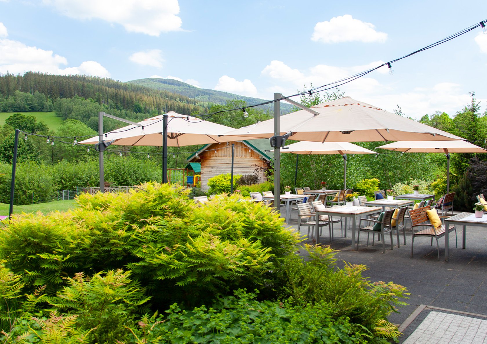 A po aktywnym dniu odpoczniecie w ogrodzie, na basenie lub w SPA, nabierzecie sił dzięki kuchni pełnej smaku i wyśpicie się w komfortowych pokojach z widokiem na góry.